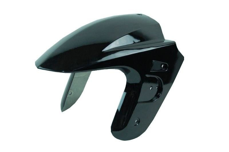 Błotnik przedni czarny lakierowany do skutera QT4 Longjia Sharpy oraz podobnych skuterów to element, który pełni dwie ważne funkcje. Po pierwsze, chroni kierowcę przed bryzgami wody, błota i innych zanieczyszczeń, które mogą utrudniać jazdę i zabrudzić pojazd. Po drugie, pełni funkcję estetyczną, nadając skuterowi estetyczny i schludny wygląd.