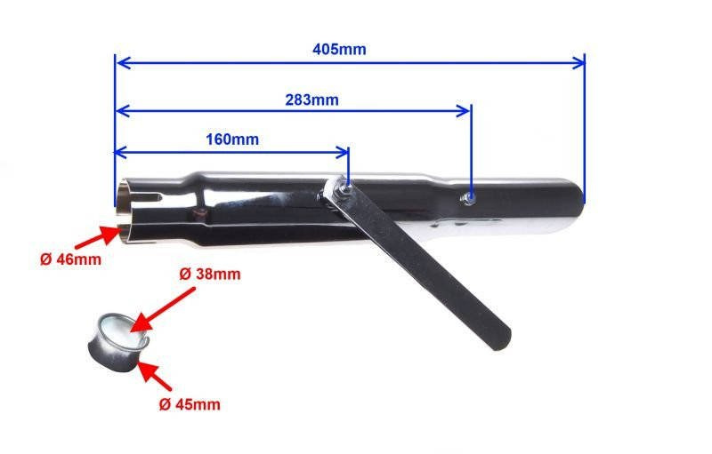 Uniwersalny tłumik chromowany przeznaczony do motocykli.