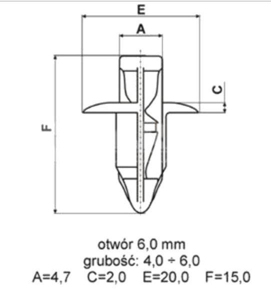 • Kołek plastikowy spinka do montażu owiewek, plastików motocyklowych.
