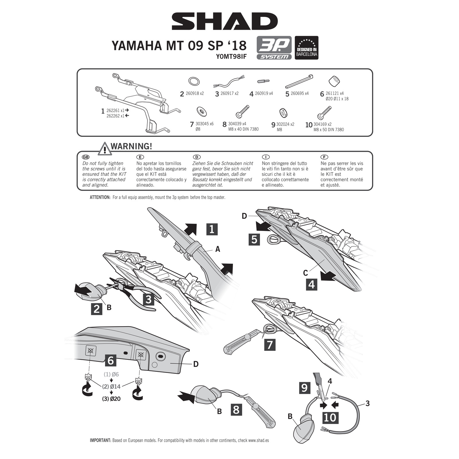 - Zintegrowana konstrukcja: zestaw 3P jest znacznie lepiej zintegrowany z motocyklem. Typowa prostokątna rama jest zredukowana do pojedynczego ramienia, które wspiera trzy punkty (3P) potrzebne do zamocowania Bocznych kufrów.
