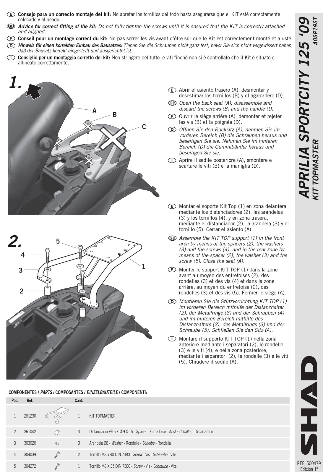 Aby zamontować kufer tylny do motocykla, konieczne jest przymocowanie do stelaża płyty dołączonej do kufrów SHAD. Płyty montażowe są dołączone do wszystkich kufrów głównych z wyjątkiem serii Terra, gdzie płytę montażową należy zakupić osobno.