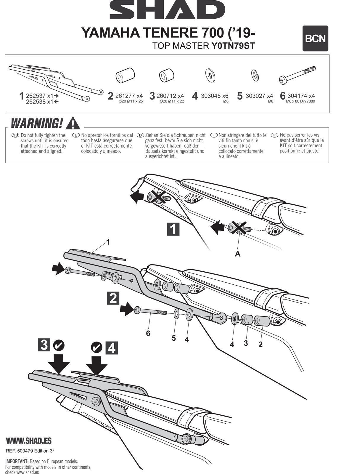 Aby zamontować kufer tylny do motocykla, konieczne jest przymocowanie do stelaża płyty dołączonej do kufrów SHAD. Płyty montażowe są dołączone do wszystkich kufrów głównych z wyjątkiem serii Terra, gdzie płytę montażową należy zakupić osobno.