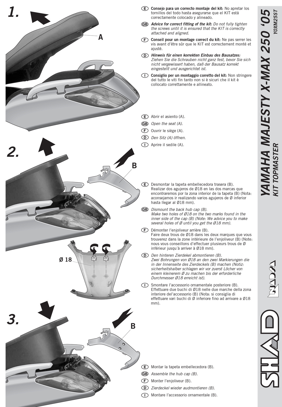 Aby zamontować kufer tylny do motocykla, konieczne jest przymocowanie do stelaża płyty dołączonej do kufrów SHAD. Płyty montażowe są dołączone do wszystkich kufrów głównych z wyjątkiem serii Terra, gdzie płytę montażową należy zakupić osobno.