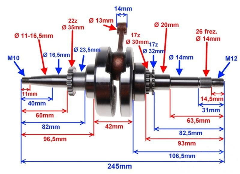 Wał korbowy skuter 4T 139qmb 22Z Zipp Inca Barton